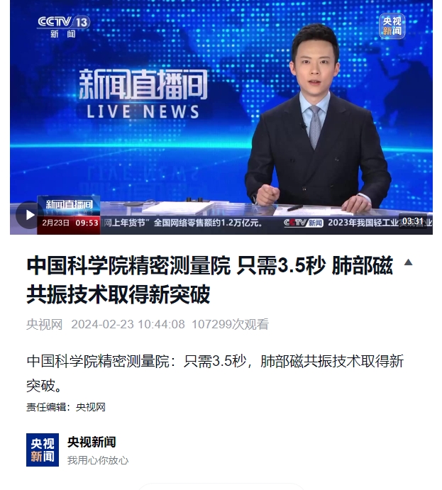 【CCTV13】中國科學院精密測量院 只需3.5秒 肺部磁共振技術(shù)取得新突破
