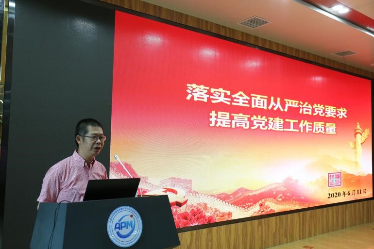 馮燦以《深入推進“基層組織建設(shè)年”活動,大力建設(shè)“四強黨支部”》為題作交流發(fā)言。結(jié)合學(xué)習(xí)貫徹落實《黨委(黨組)落實全面從嚴治黨主體責(zé)任規(guī)定》《中央和國家機關(guān)基層黨組織建設(shè)質(zhì)量提升三年行動計劃(2019-2021年)》《中國科學(xué)院“基層組織建設(shè)年”活動實施方案》,他強調(diào),全面從嚴治黨,基層黨組織必須強起來,基層黨支部要按照開展學(xué)習(xí)討論、認真自檢自查、抓好整改落實、開展達標評估四個步驟認真開展好“基層組織建設(shè)年”活動。圍繞推進年度黨建重點工作,他強調(diào),結(jié)合科研單元布局調(diào)整,推進黨支部的調(diào)整設(shè)立工作,落實黨的組織和黨的工作“全覆蓋”和“有效覆蓋”;選優(yōu)配強領(lǐng)頭雁,落實部門黨員負責(zé)人擔(dān)任黨支部書記;加強新任黨支部書記及支部工作培訓(xùn),提高黨務(wù)干部的履職能力和水平;黨委切實落實全面從嚴治黨主體責(zé)任,結(jié)合精密測量院新的黨支部布局,建立新的黨委委員聯(lián)系黨支部工作制度;黨委及黨委委員根據(jù)相關(guān)要求,加強對黨支部的聯(lián)系指導(dǎo)和推動督促,為全面從嚴治黨打下堅實的基礎(chǔ)。