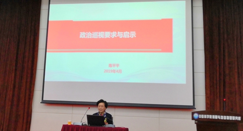 陳平平作題為《政治巡視要求與啟示》的專題報告。介紹了十九屆中央關于政治巡視的要求、深化政治巡視的重點任務以及由巡視工作引發(fā)的啟示,闡述了研究所黨建、管理工作中的五個關系,倡導努力構建一流研究所的創(chuàng)新生態(tài)。