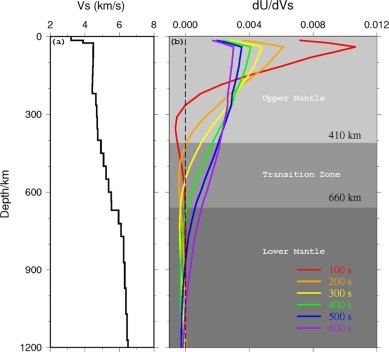 長(zhǎng)周期地面震動(dòng)信號(hào)對(duì)地球深部的采樣敏感性(100-600s)