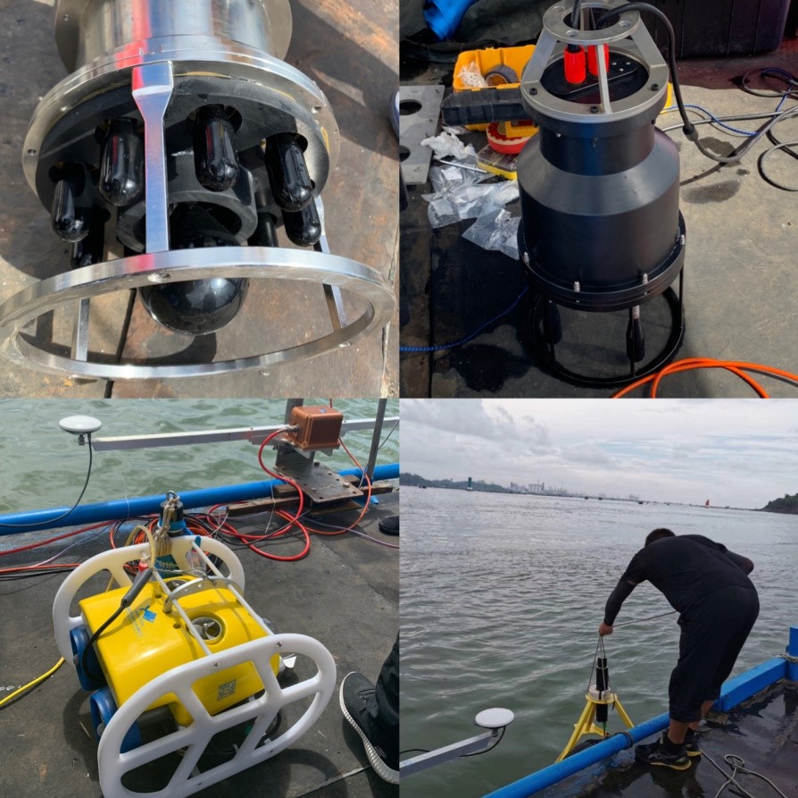 精密測量院近年來積極響應國家號召,面向國家戰(zhàn)略需求,在科技部國家重點研發(fā)項目、中科院重點部署項目、廣西科技重大專項等國家和地區(qū)重大科研任務的支持下,持續(xù)開展了一系列水下組合導航定位、海洋測繪、海洋牧場高精度定位等領域的研究,并聯(lián)合建設了廣西自治區(qū)唯一的“北部灣智慧海洋牧場工程研究中心”。2020年8月14日-17日,精密測量院大地測量與地球動力學國家重點實驗室研究員鮑李峰、副研究員武凜,帶領海洋測繪與水下導航學科組科研人員,聯(lián)合相關合作單位,在位于廣西自治區(qū)欽州市的茅尾海海域,開展了海洋牧場測繪導航應用系列試驗。本次試驗,在前期多次海試的基礎上,利用慣性導航系統(tǒng)、水下聲學定位系統(tǒng)、聲學多普勒流速剖面儀(ADCP)、多普勒計程儀(DVL)、聲速剖面儀、海洋多波束測深儀、GNSS系統(tǒng)等多種測繪、導航設備,在茅尾海的海洋牧場核心示范區(qū),相繼開展了海底地形測量、超短基線/長基線水下聲學定位、水下組合導航定位等一系列試驗。試驗期間,精密測量院副院長王勇親臨現(xiàn)場進行指導,極大地鼓舞了現(xiàn)場科研試驗人員的斗志。