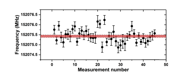 在實驗方面,針對國際上同類實驗的主要問題,研究團隊研制了更加穩(wěn)定的亞穩(wěn)態(tài)Li+離子源、采用了穩(wěn)頻于波長計的548nm探測光和快速交替掃描并Doppler-Free的飽和熒光光譜方案,并利用飛秒光梳對探測光頻率進行了精確測量,實現(xiàn)了7Li+離子23P態(tài)精細結(jié)構(gòu)以及23S和23P態(tài)的超精細結(jié)構(gòu)的高精度測量,精度優(yōu)于100kHz(見圖一),比國際上最精確的實驗值在精度上提高了一個數(shù)量級。