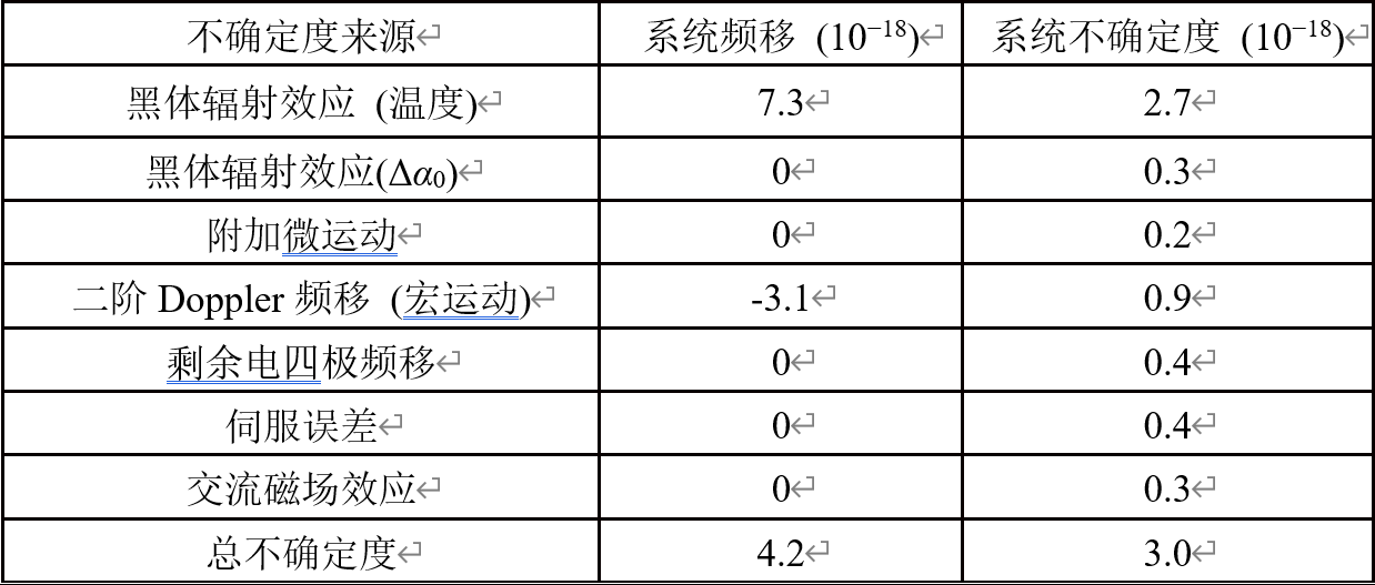 鈣離子光頻標(biāo)系統(tǒng)誤差評估表