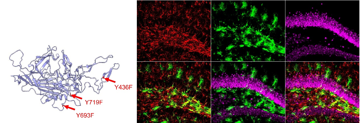 AAV病毒載體突變位點(diǎn)示意圖及重組改造后特異性標(biāo)記星形膠質(zhì)細(xì)胞效果