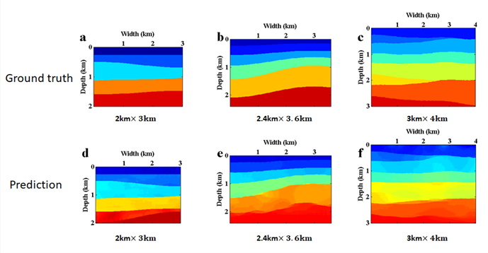 準確的速度模型在高精度地震成像中起著關(guān)鍵作用。作為一個非線性逆問題,傳統(tǒng)速度建模方法由于數(shù)據(jù)中缺少低頻分量、計算效率低等問題在實際地震勘探中受到限制。團隊借助深度學習方法逼近不同數(shù)據(jù)域之間的非線性映射函數(shù)的強大能力,來解決原始地震數(shù)據(jù)高效速度建模問題。在這項工作中,該團隊開發(fā)了一種數(shù)據(jù)驅(qū)動反演方法,該方法基于具有編碼器-解碼器結(jié)構(gòu)的多尺度深度卷積神經(jīng)網(wǎng)絡(luò),以直接從原始地震數(shù)據(jù)中解決具有不同尺度速度模型的反演問題。通過設(shè)計壓縮矩陣壓縮輸入數(shù)據(jù),網(wǎng)絡(luò)可以獲得任意尺度的預(yù)測。