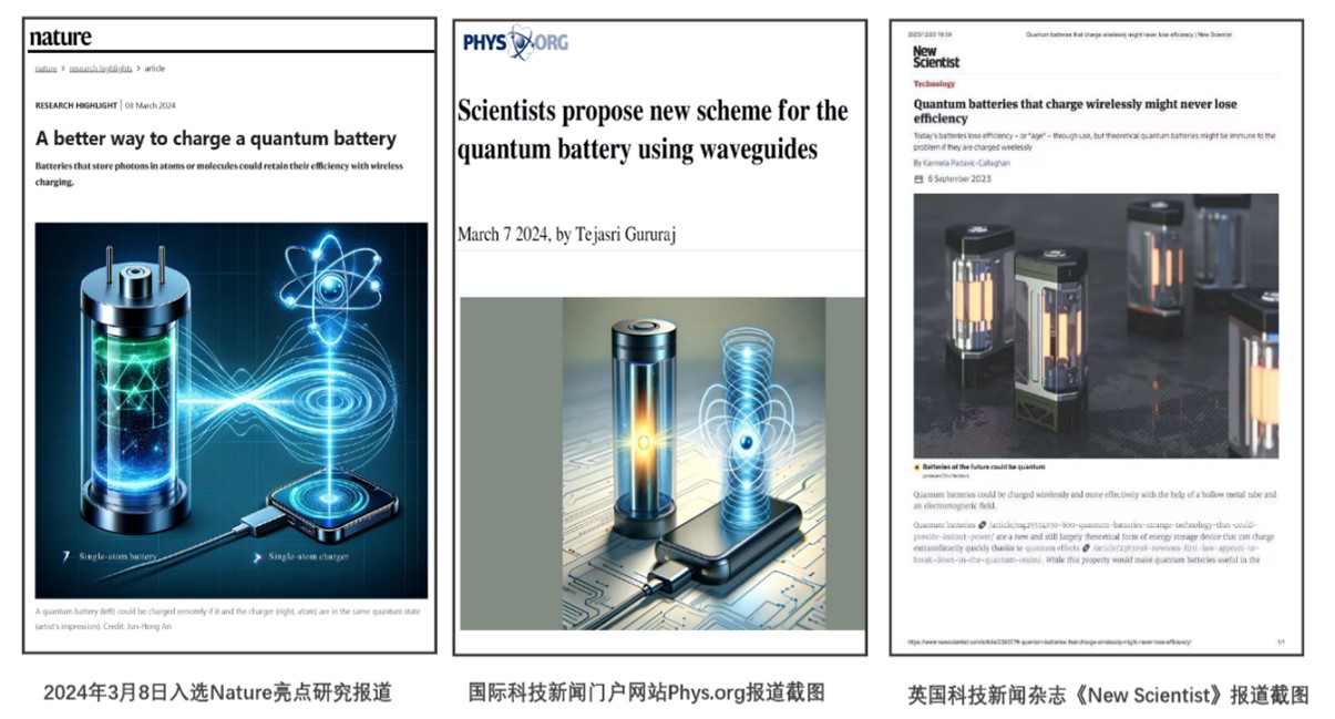 《Nature》刊文對該工作進行了題為“A better way to charge a quantum battery”的“亮點研究”報道[2]。
