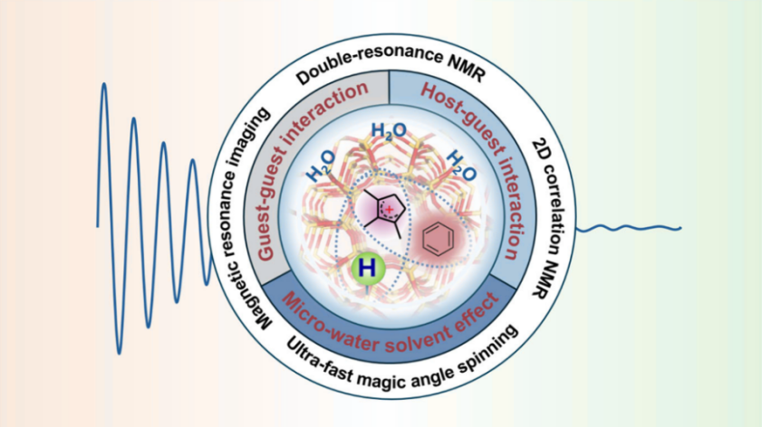沸石分子篩是石油化工生產(chǎn)中應(yīng)用最為廣泛的一類催化材料。其納米孔道內(nèi)的限域效應(yīng)使得主-客體、客體-客體以及環(huán)境介質(zhì)(如水)之間微弱的分子間相互作用被顯著放大,從而深刻影響反應(yīng)路徑、選擇性和催化劑壽命。然而,這些相互作用在實(shí)驗(yàn)上難以捕捉和量化,其具體作用機(jī)制與調(diào)控規(guī)律一直是該領(lǐng)域的重大挑戰(zhàn)。近年來,該研究團(tuán)隊(duì)圍繞上述挑戰(zhàn),在高分辨、高靈敏固體NMR方法學(xué)領(lǐng)域取得了一系列重要突破并成功將其應(yīng)用于沸石催化體系的研究中。
