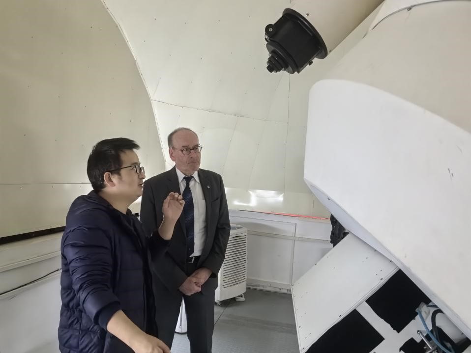 ? ? 會后,Harald Schuh教授在青年正高級工程師張杰的陪同講解下,參觀了大地測量野外觀測研究站。