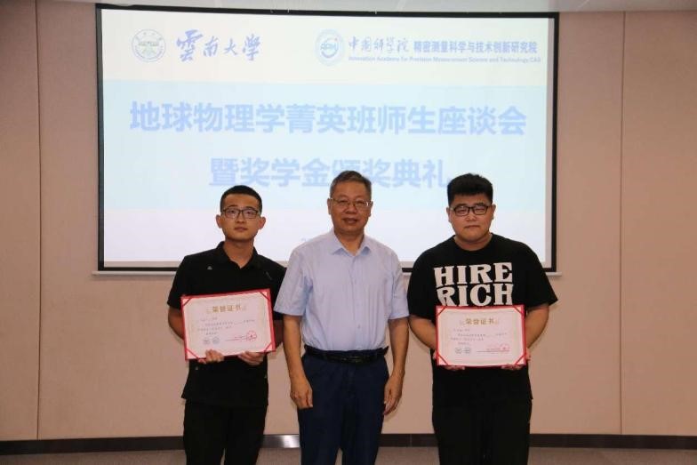 9月22日,精密測(cè)量院——云南大學(xué)“地球物理學(xué)菁英班”師生座談會(huì)暨獎(jiǎng)學(xué)金頒獎(jiǎng)典禮在精密測(cè)量院舉行。中國(guó)科學(xué)院院士孫和平,云南大學(xué)教師代表文麗敏、李西,精密測(cè)量院副院長(zhǎng)倪四道、研究員儲(chǔ)日升、曾祥方、侯明強(qiáng)等十余位“菁英班”科研實(shí)踐課指導(dǎo)老師出席活動(dòng),2019級(jí)“菁英班”學(xué)員參加活動(dòng)。研究生處處長(zhǎng)任曉華主持活動(dòng)。