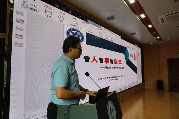 何長才作題為“管人管事管自己——研究所工作中的幾點(diǎn)感悟”的專題報(bào)告